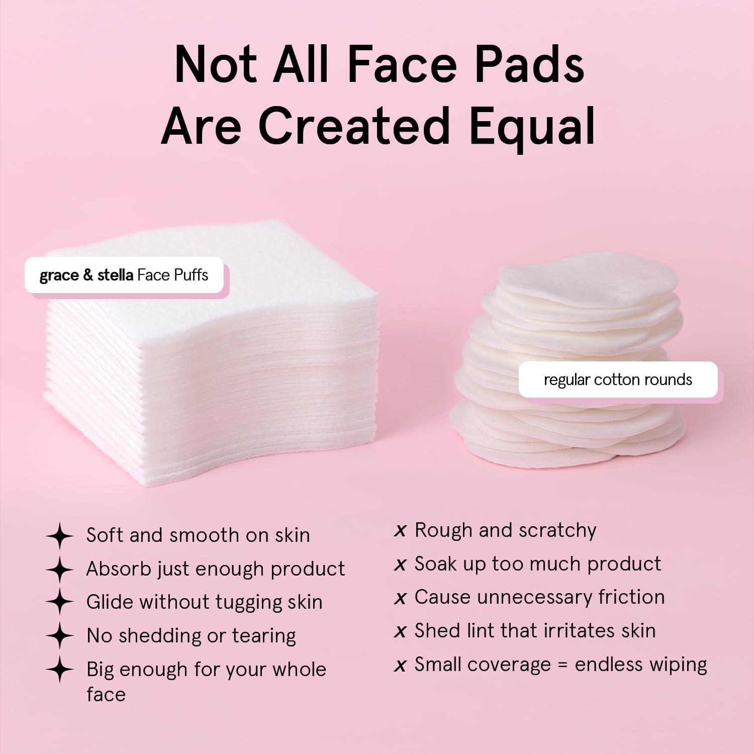 grace & stella Face Pads for Toner, Essence, and DIY Mask (100 Count) - Soft, Lint-Free Makeup Remover Pads - Durable XL Facial Pad for Skincare - Vegan, Cruelty-Free(Pack of 200)
